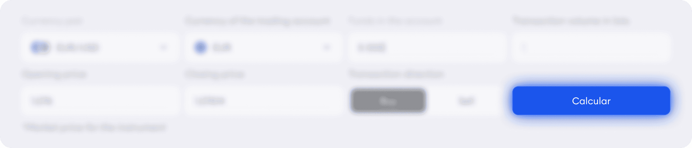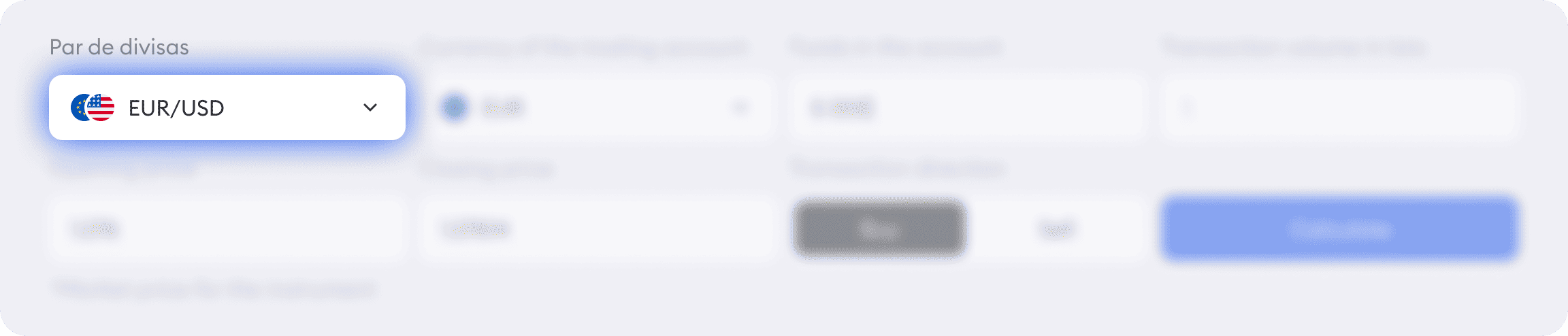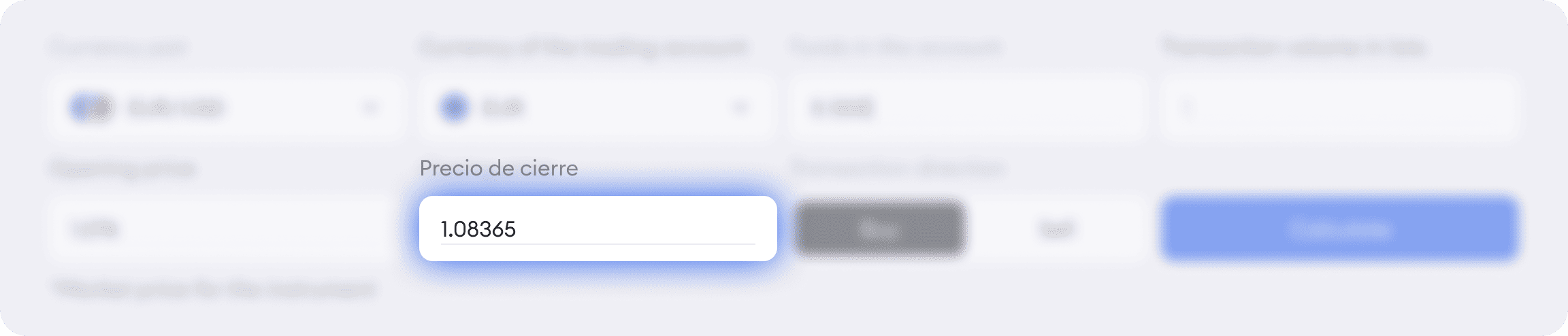 Haga clic en «Calcular». Verá el resultado financiero de la transacción, abierta y cerrada según las condiciones seleccionadas