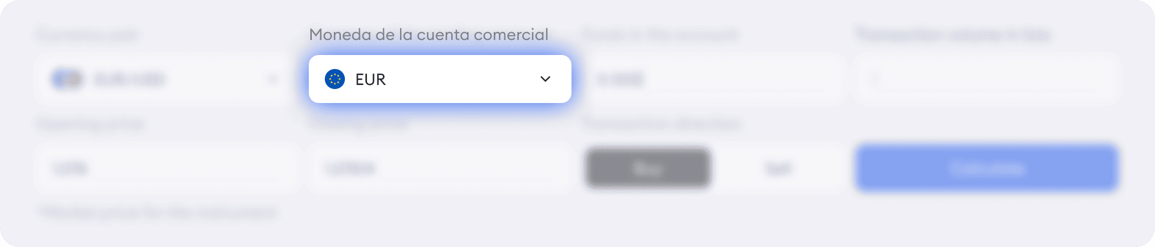 Seleccione la moneda en la que está denominada su cuenta comercial
