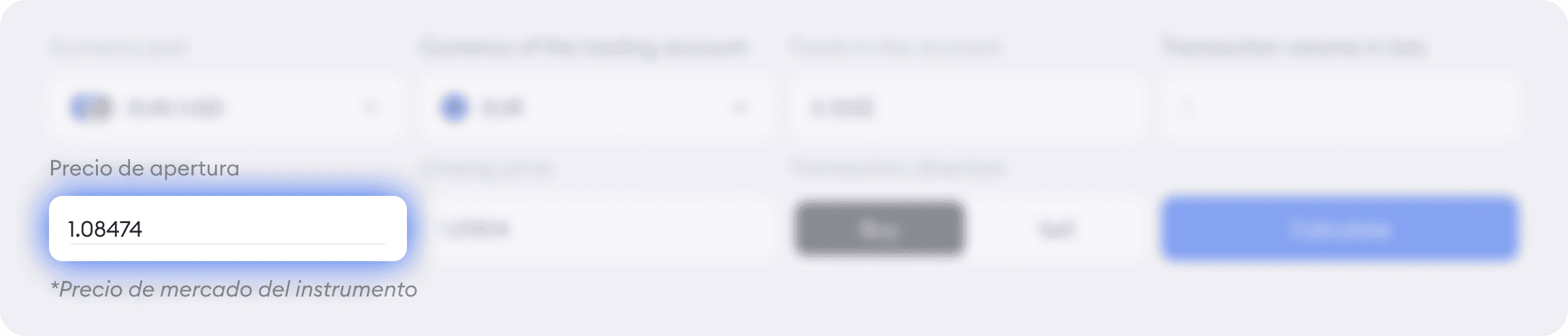 Establecer el precio de apertura de la posición (de forma predeterminada, el campo contiene el precio de mercado actual)